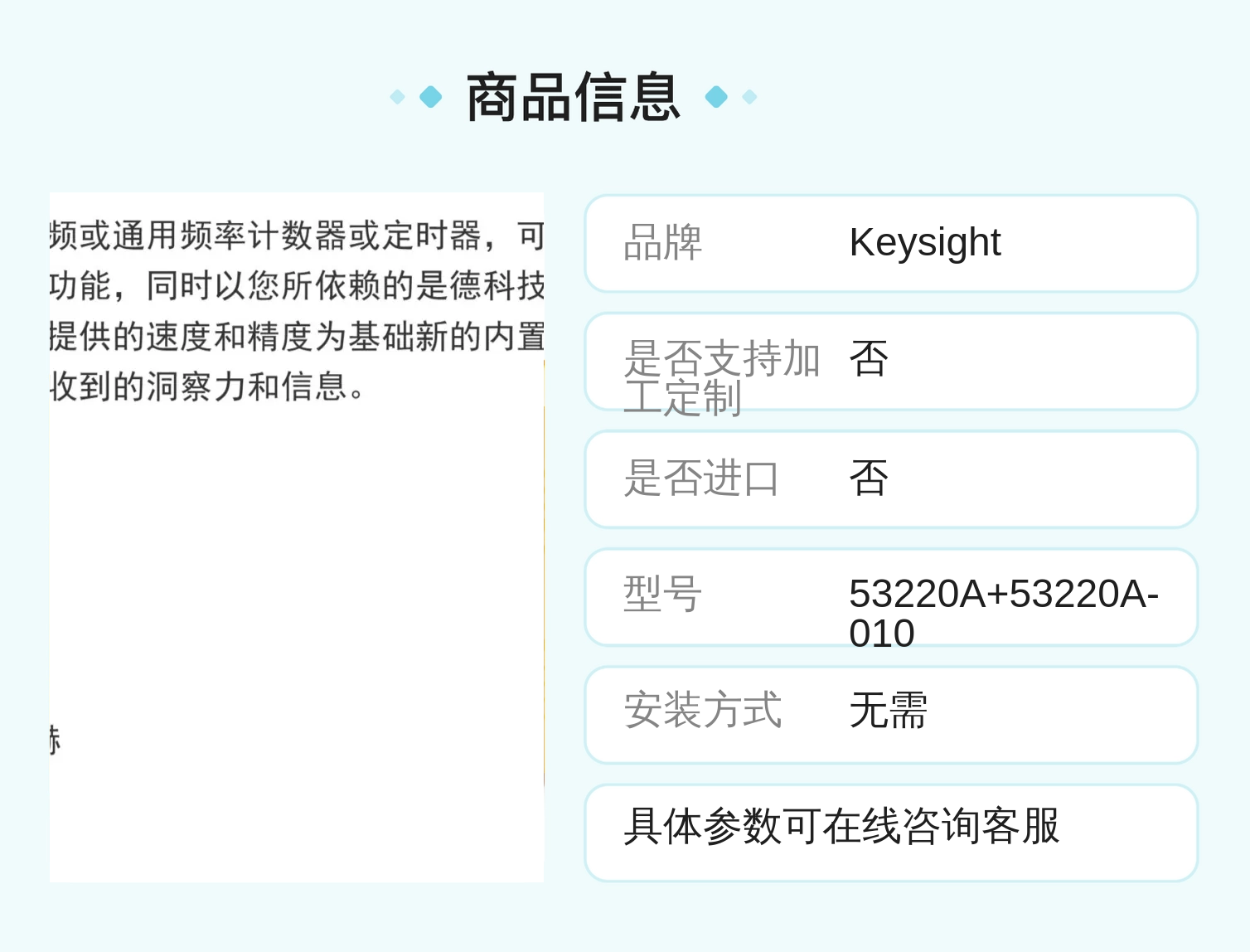 Keysight 53220A 高精度频率计 350MHz 12位/秒 频率测量仪器